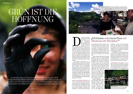 In Kolumbien lagern die bedeutendsten Smaragdvorkommen der Welt. Die lupenreinsten Steine sind tausendmal teurer als Gold, wertvoller als Diamanten. Die WIENERIN hat in den Flüssen und Abraumhängen Frauen getroffen, die nachts vom „Millionen-Dollar-Stein“ träumen und tags danach schürfen.