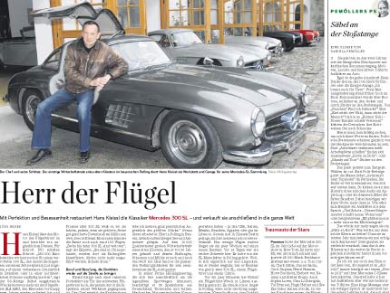 Kleissl klappt nach einer rasanten Probefahrt die Tür des schwarzen Flügeltürers hoch, der gerade durch die Inspektion seiner Werkstatt gegangenen ist. Der Chef erledigt die Endabnahme immer selbst. Beim Fahren hört er, was mit dem Wagen ist, wo es noch hakt, sagt er. Mit dem Klang des Motors bei diesem schwarzen "Flügel" ist er noch unzufrieden. Sein Chefmechaniker nickt, macht sich Notizen. Der Besitzer, ein Italiener, holt morgen das Auto ab. Die Mechaniker müssen Überstunden machen. Der Motorsound soll perfekt sein. Und alles andere auch.